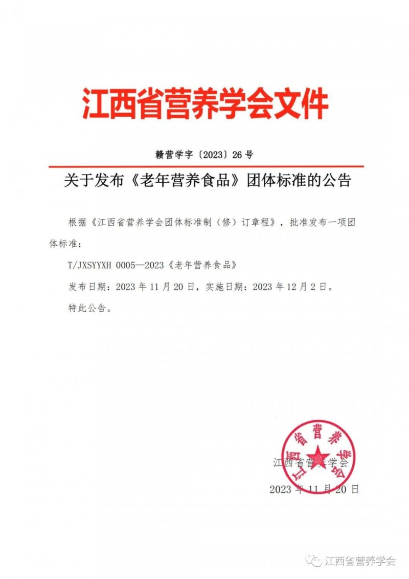 T/JXSYYXH 0005-2023 老年營養食品